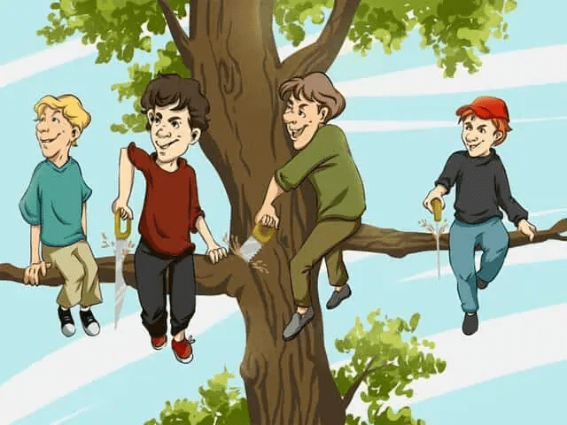 Si vous avez désigné le garçon au chapeau rouge, celui qui scie directement la branche sur laquelle il est assis, bravo : c’est bien lui qui commet l’erreur la plus évidente.