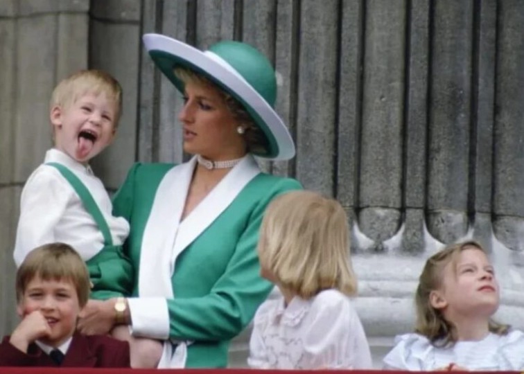 Parmi les clichés les plus tendres figure cette scène devant Buckingham Palace où le jeune Harry tire la langue à la foule. À ses côtés, Diana sourit, amusée et complice. Ce simple instant résume parfaitement son approche de la maternité : chaleureuse, naturelle et loin des codes rigides. Elle encourageait l’expression, le jeu et la spontanéité, même sous le regard du monde entier.