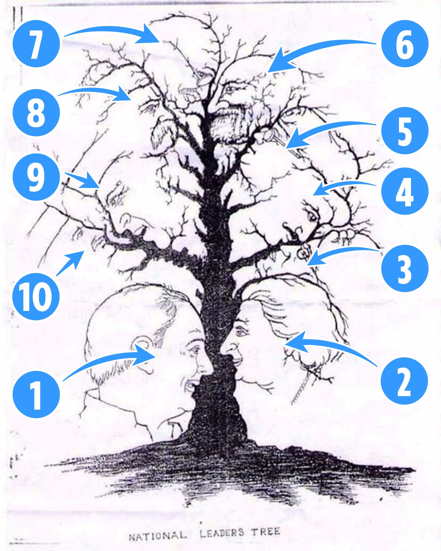 La version la plus connue du dessin affirme qu’il y aurait dix visages au total. Deux sont évidents, les huit autres demandent vraiment d’aiguiser son sens de l’observation. Certaines personnes les trouvent en moins de deux minutes, d’autres y passent beaucoup plus de temps sans tous les repérer — ce qui rend le jeu encore plus addictif.