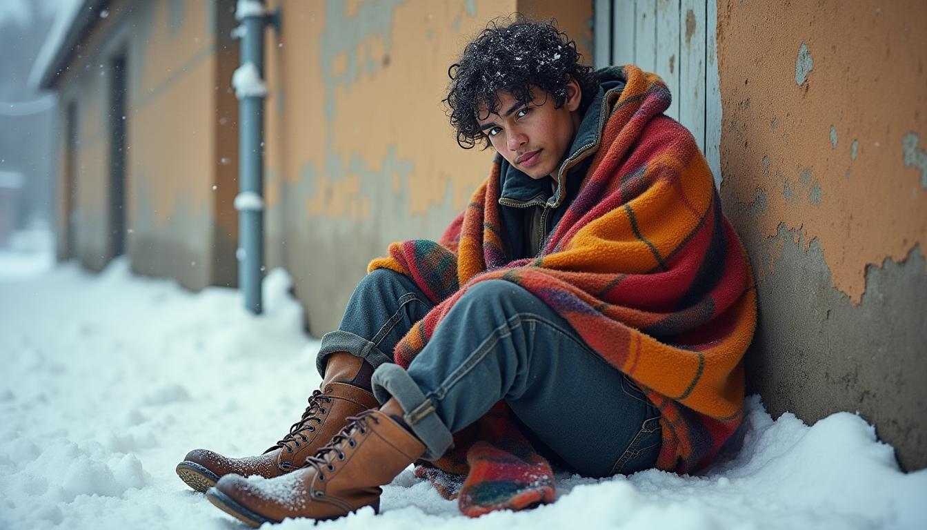 Ce jour-là, le froid mordait les joues et les trottoirs semblaient encore plus gris que d’habitude. En passant devant une église, j’ai aperçu Lucas, un jeune homme assis sur les marches, recroquevillé dans un manteau trop léger. Ses chaussures usées laissaient passer l’humidité, et son regard, fatigué, semblait pourtant chercher quelque chose… peut-être simplement être vu.