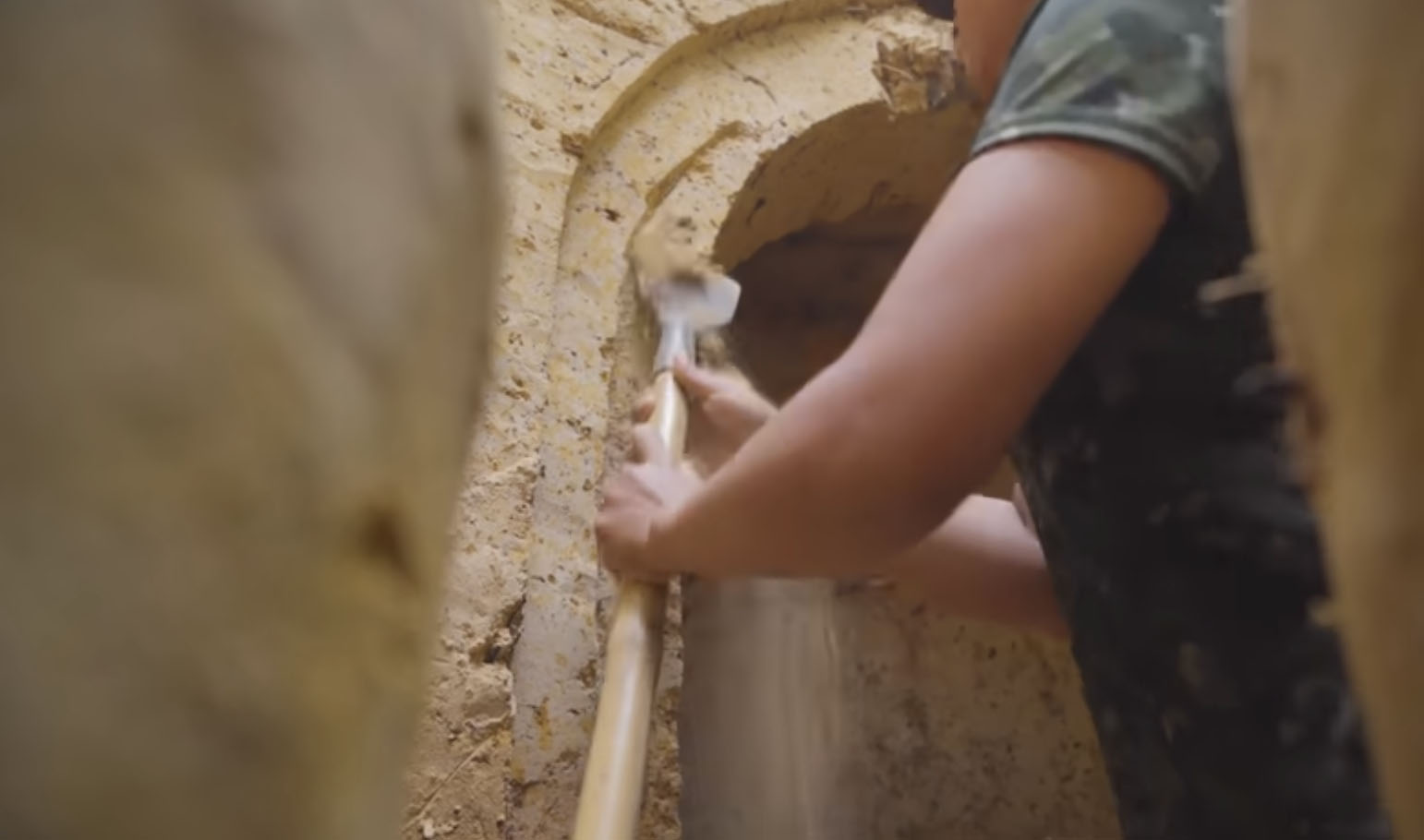 Construire une maison sous terre n’est pas une simple fantaisie. C’est un travail exigeant. Avec une volonté remarquable, elle entame le creusement presque à mains nues, utilisant des méthodes traditionnelles, parfois même anciennes, pour façonner l’espace.