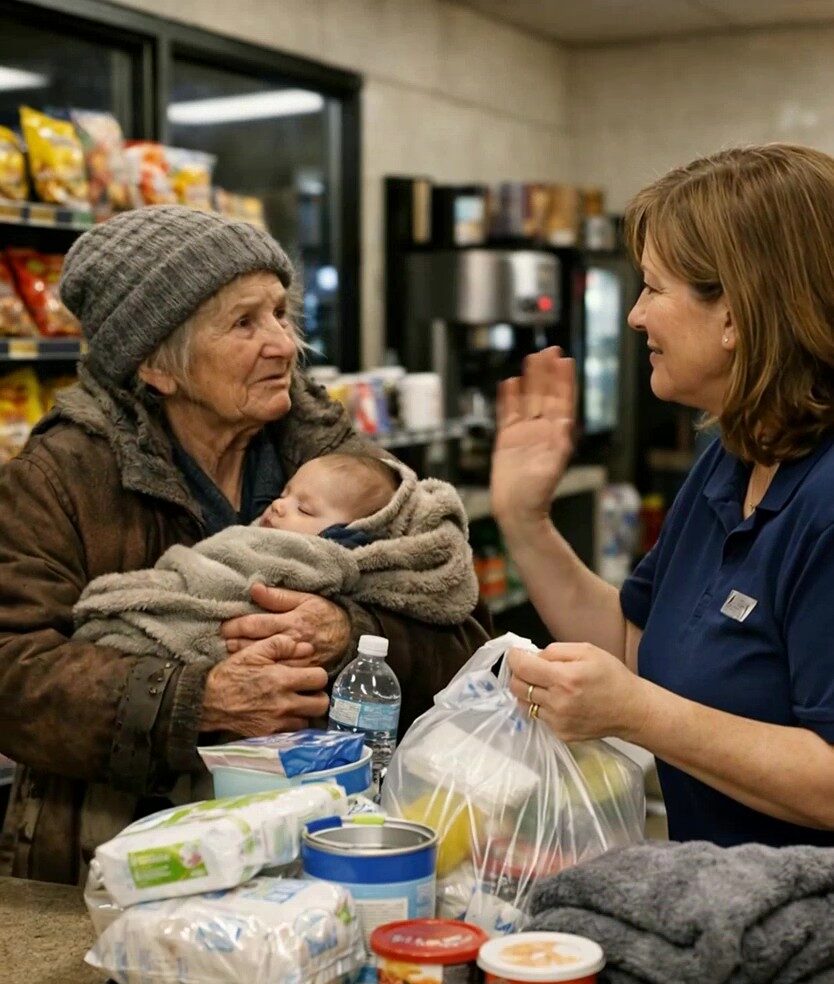 La femme qui est entrée paraissait fragile, presque effacée. Un manteau usé, des gestes hésitants, et surtout un tout petit bébé profondément endormi contre elle. Elle a parcouru les rayons avec une attention extrême, choisissant uniquement le strict nécessaire : de quoi s’occuper d’un nourrisson, une banane, une bouteille d’eau. Rien de superflu, rien pour elle.