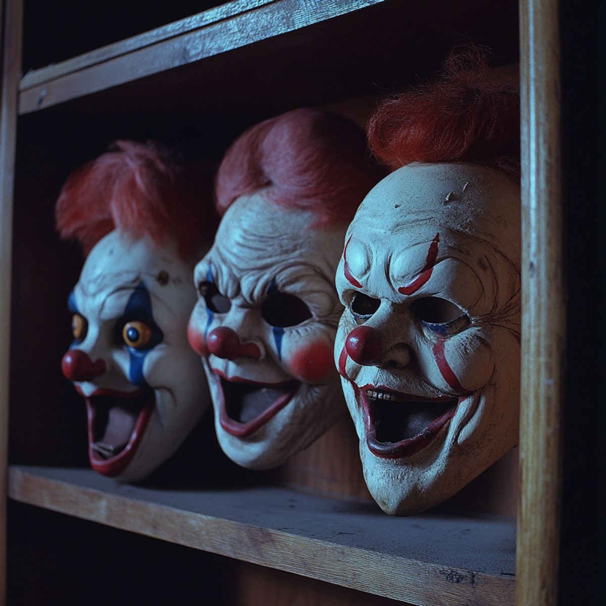 Prétextant vouloir jouer à la console, il entre dans la chambre, ouvre le placard et… les voit. Alignés sur une étagère, trois “visages” en caoutchouc semblant le regarder. En s’approchant, il découvre la vérité : ce ne sont que des masques d’Halloween, un peu effrayants certes, mais totalement inoffensifs.