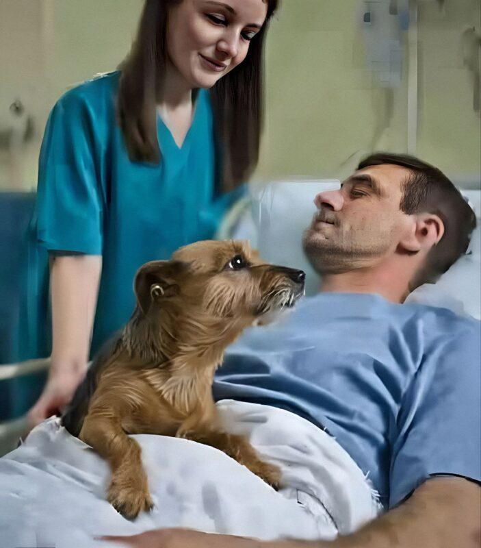 Lorsque Milo entra dans la chambre, l’atmosphère changea. Le chien s’approcha lentement du lit, puis, en reconnaissant son maître, aboya avec insistance. Il grimpa, frotta son museau contre la main immobile de Lucas et la toucha doucement de la patte.