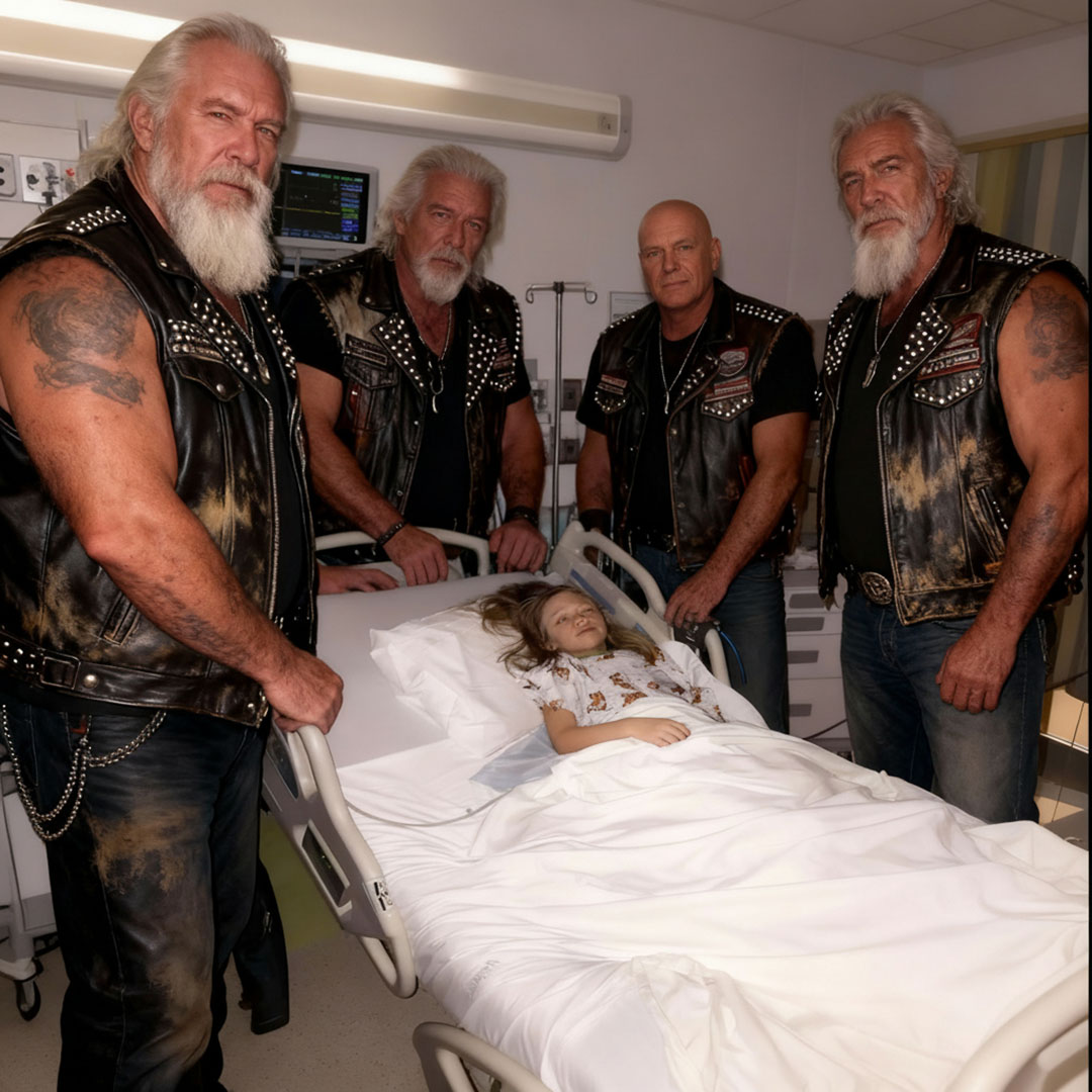 Ils étaient quatre, imposants, vêtus de cuir et de bottes épaisses, avançant dans un couloir d’hôpital habituellement silencieux. À leur passage, les conversations se sont tues, les regards se sont levés. Pourtant, derrière cette allure impressionnante, il n’y avait ni menace ni provocation, mais une intention profondément humaine. Ce jour-là, ces motards n’étaient pas venus faire du bruit, mais offrir quelque chose de bien plus précieux : une présence, une chaleur, une promesse de solidarité humaine.