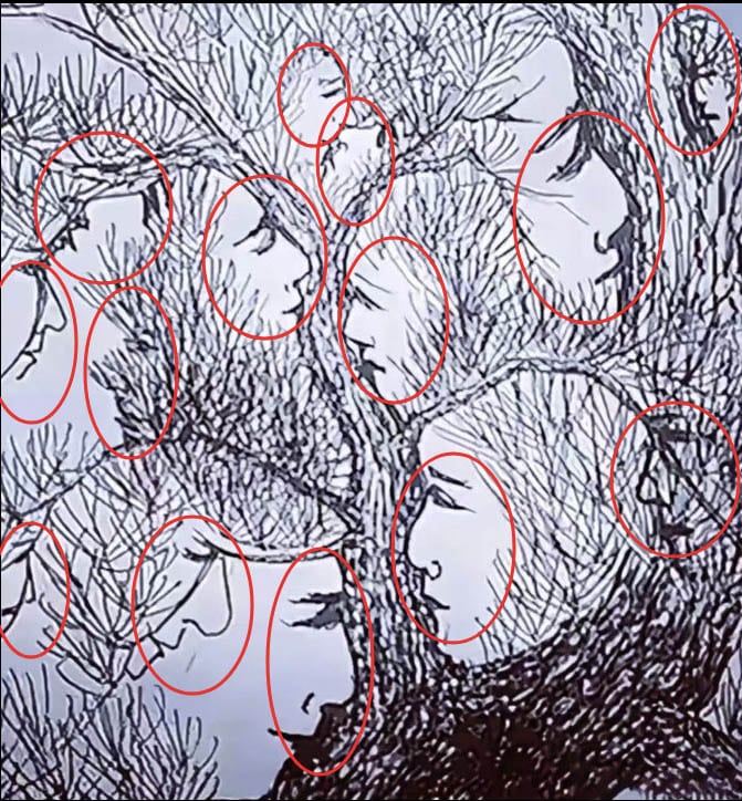 Mettez votre vue à l’épreuve : combien de visages parviendrez-vous à repérer dans cet arbre mystérieux ?