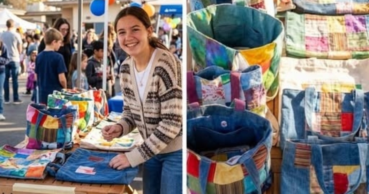 Pendant plusieurs semaines, elle confectionne avec soin des sacs en tissu faits main, réalisés à partir de matériaux récupérés, dans le but de récolter des fonds pour aider des familles dans le besoin.