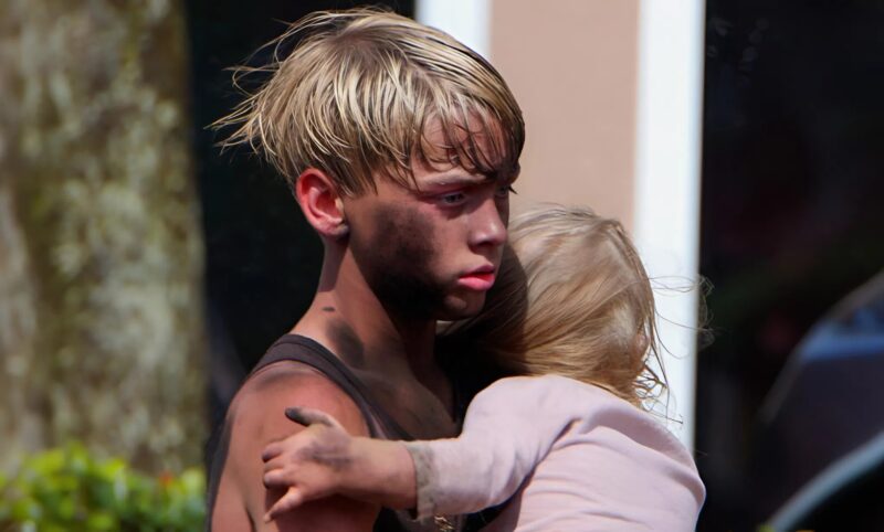 Je n’y ai d’abord pas prêté attention… jusqu’à ce que je distingue une silhouette sortir des flammes. C’était mon fils. Mon fils de 13 ans, couvert de suie, les yeux encore pleins de larmes, tenant dans ses bras une fillette apeurée. À ce moment précis, le temps s’est arrêté.