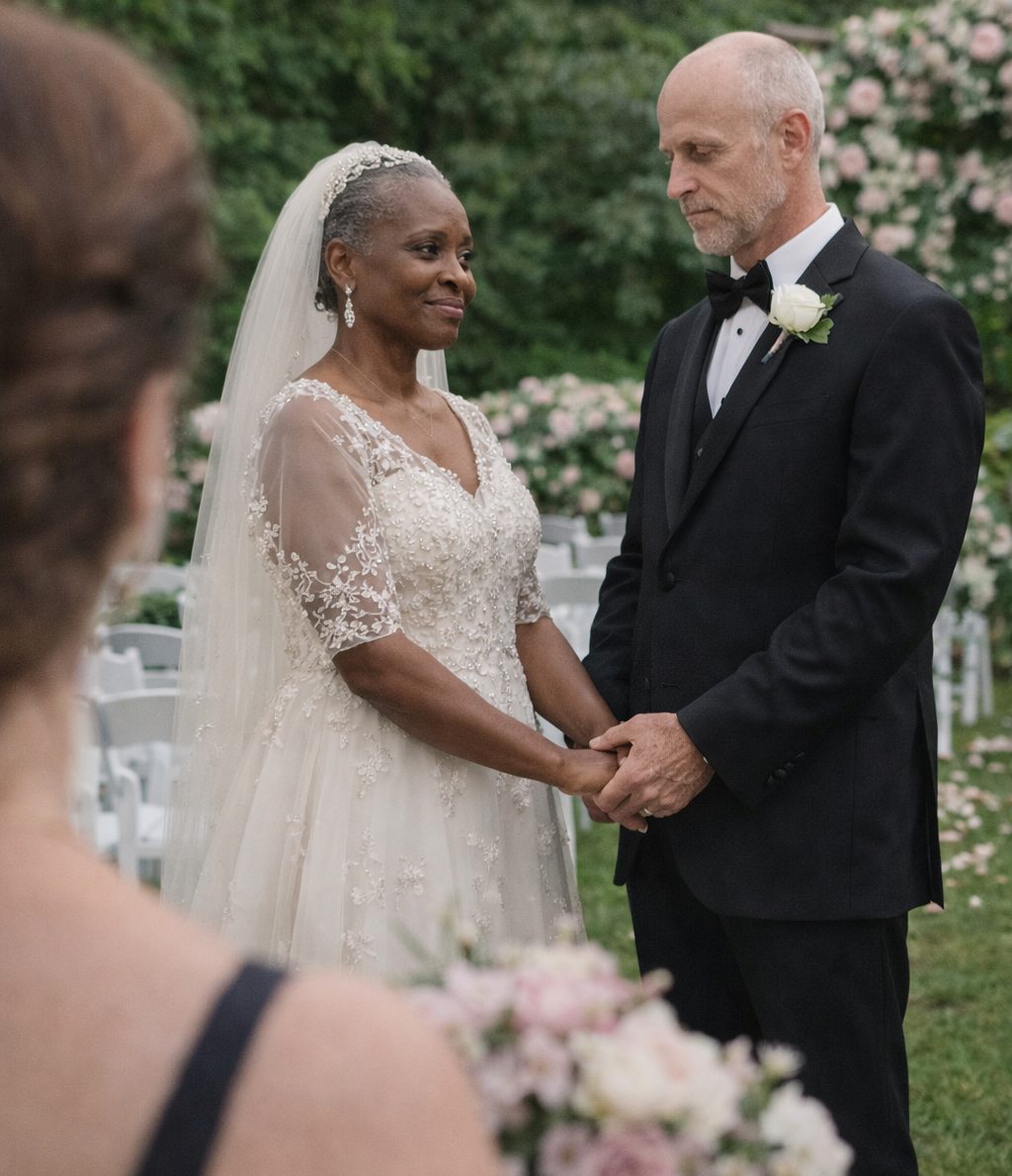 La cérémonie a eu lieu dans notre jardin, là où ma mère plantait des tulipes chaque printemps.