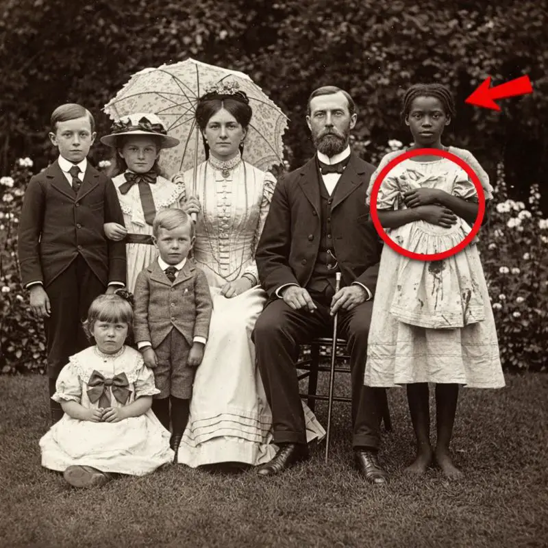 Mais dans un coin du tableau, presque invisible, se trouvait une jeune fille. Pieds nus, en retrait, silencieuse. Pendant des années, on a simplement expliqué aux visiteurs qu’il s’agissait d’une domestique. Personne ne posait plus de questions, et l’histoire s’arrêtait là.