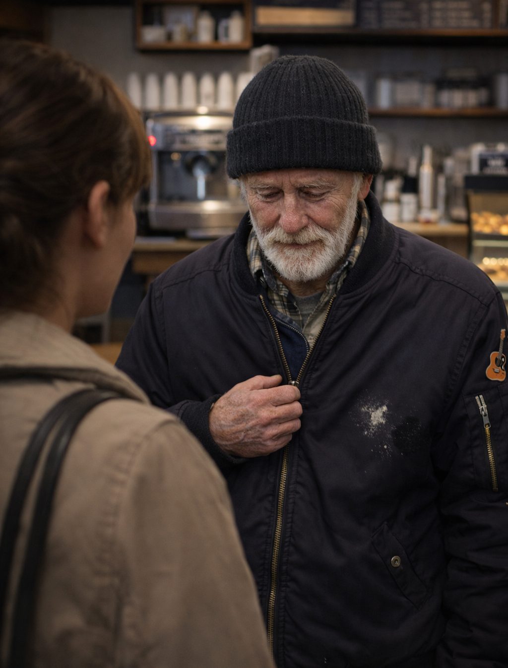 Alors que j’attendais ma commande, un homme âgé est entré. Ses vêtements étaient usés et il comptait quelques pièces dans sa main.