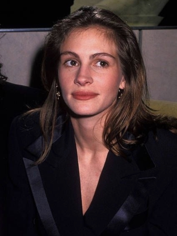 Ce qui frappe immédiatement, c’est son sourire déjà légendaire. Impossible de ne pas reconnaître cette expression lumineuse qui deviendra plus tard sa signature à l’écran. À l’époque, Julia Roberts n’était encore qu’une actrice pleine de rêves, cherchant sa place dans une industrie très exigeante.