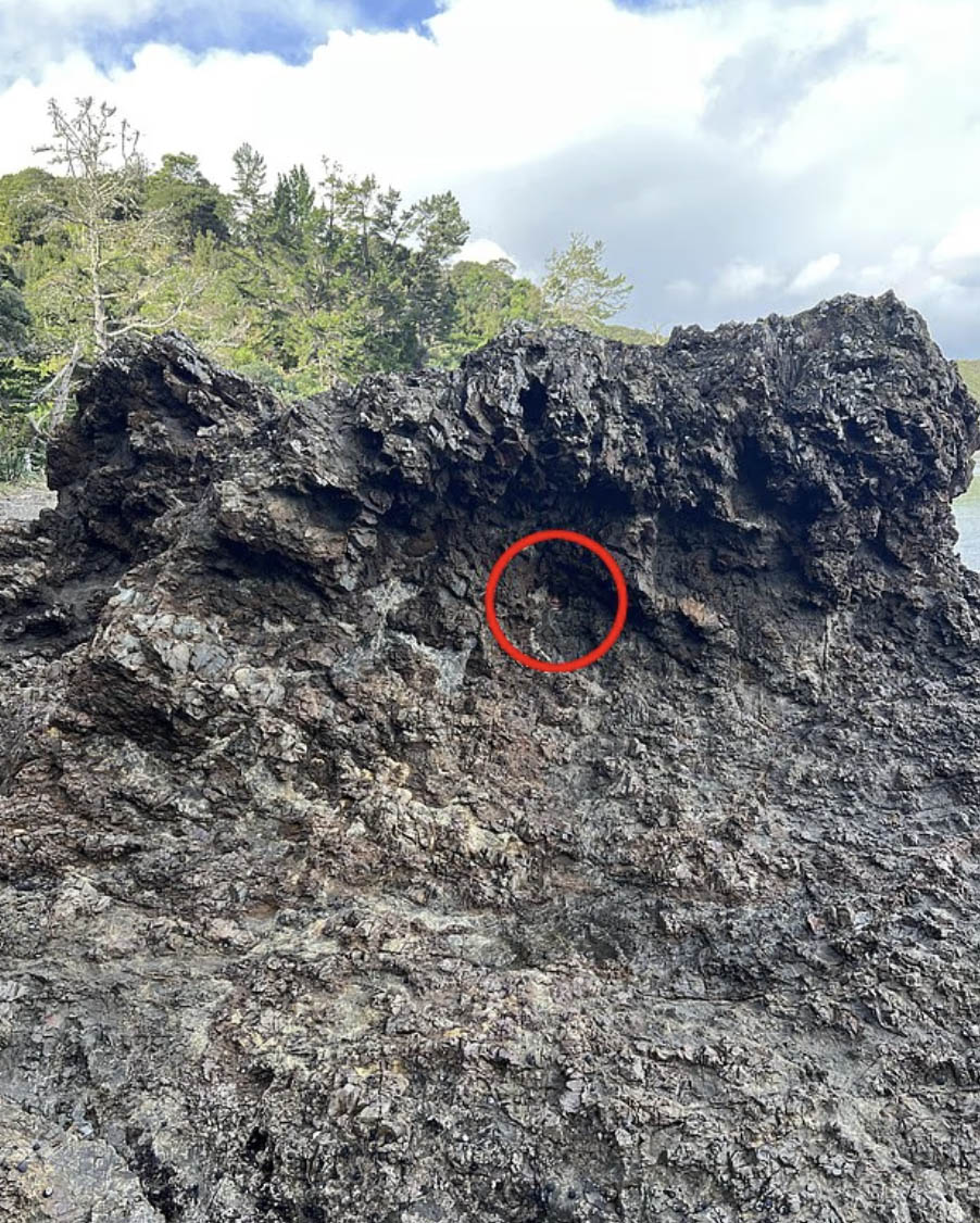 Le cliché, pris lors d’une promenade en bord de mer, montre une formation rocheuse classique mais d’une texture si complexe qu’elle déjoue les regards les plus attentifs. Selon la mère à l’origine de la photo :