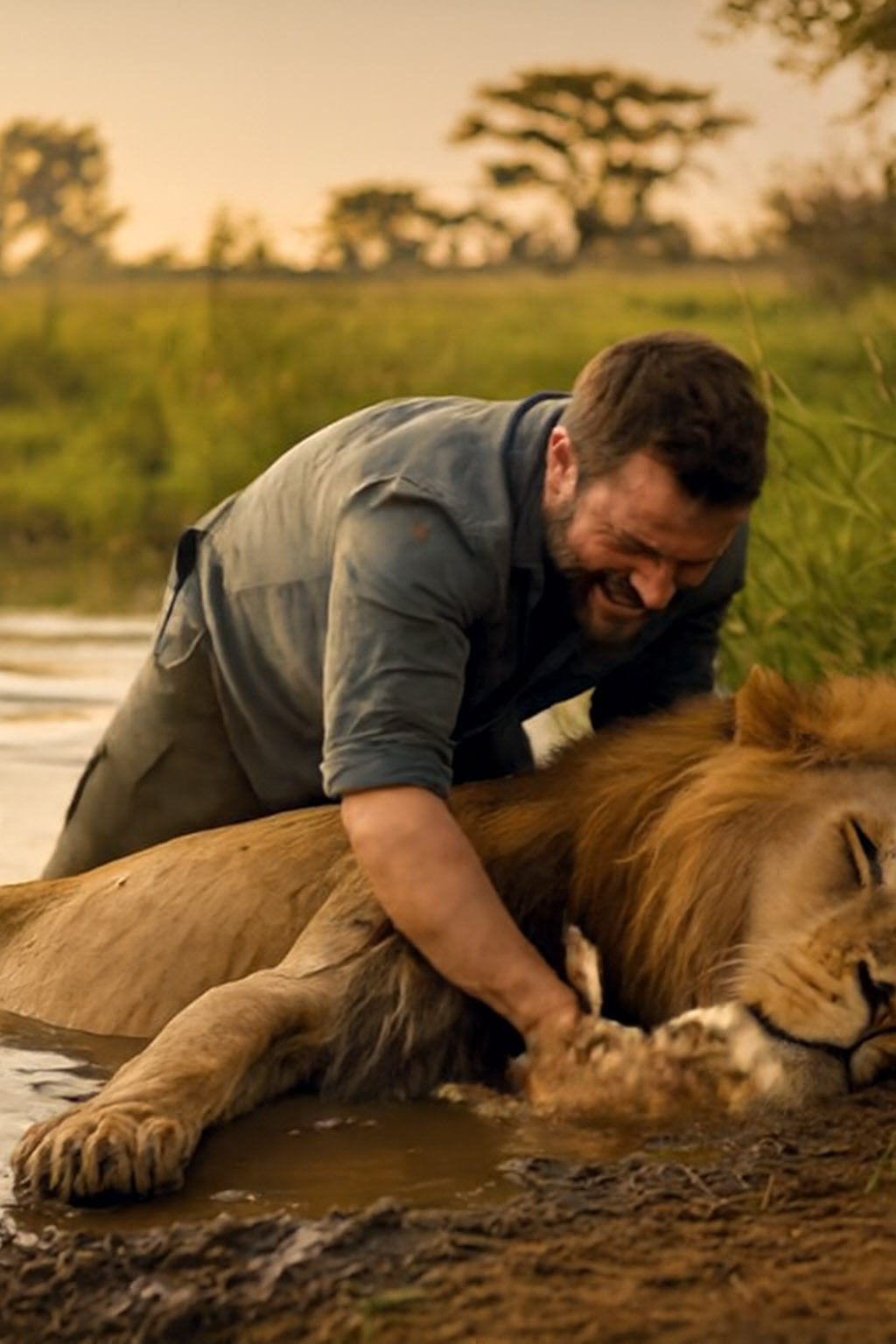 La rivière était traîtresse, le courant puissant. Et tirer un lion adulte jusqu’à la rive, même affaibli, relevait de l’exploit. Mais porté par une force qui dépasse la peur, il a agrippé la crinière détrempée et a tiré, poussé, glissé, centimètre par centimètre.