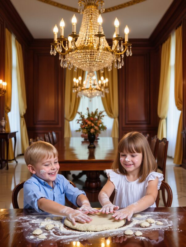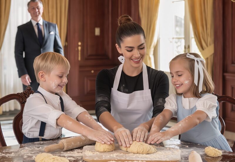 La pièce, d’ordinaire immaculée, est recouverte d’une fine poussière blanche : de la farine. Léo et Camille, les joues barbouillées, rient aux éclats tandis que Clara leur montre comment pétrir une pâte maison. Elle a remonté ses manches, le visage rayonnant, et lance des boules de pâte sous les cris amusés des enfants.