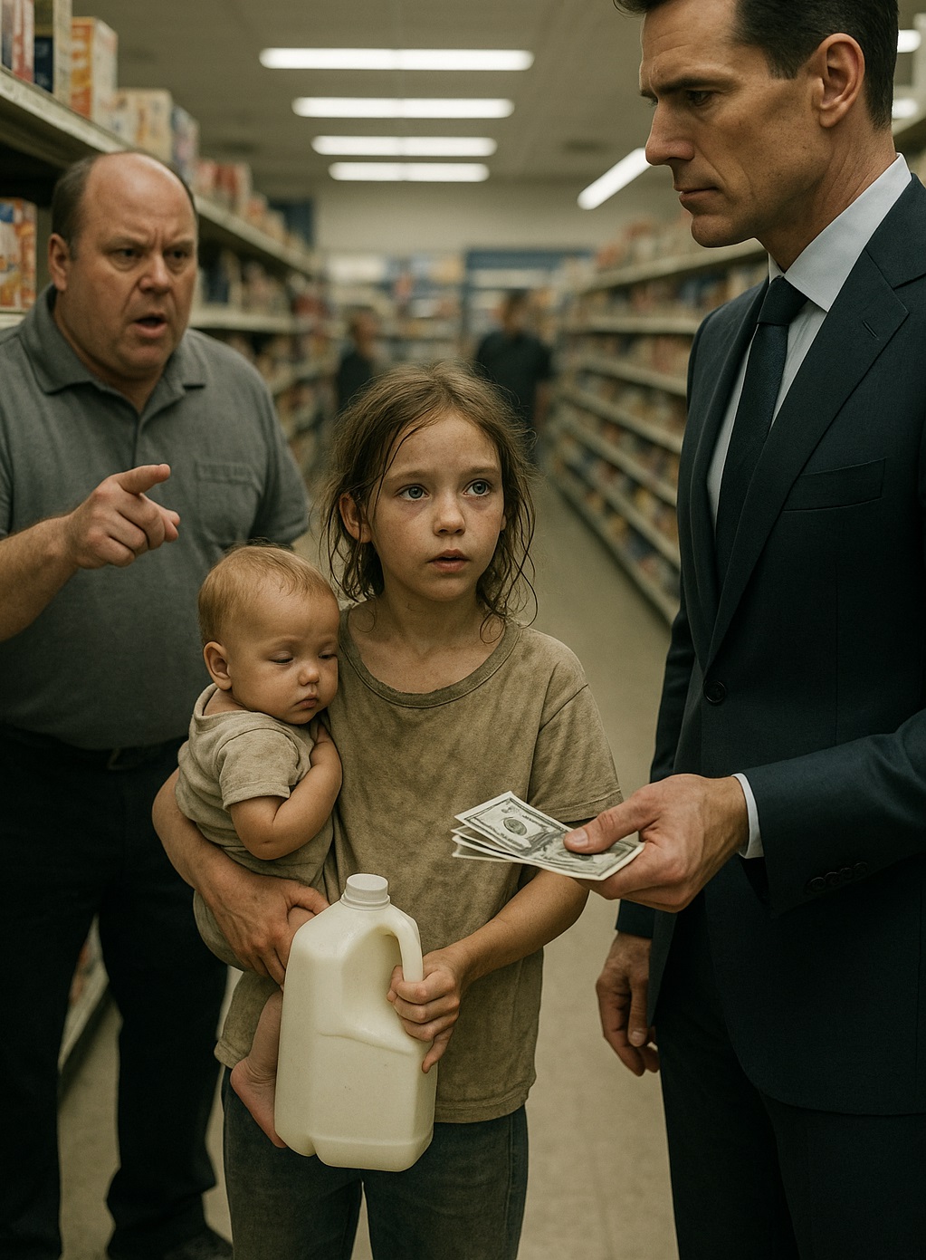 Léna n’avait pas dix ans. Ses vêtements trop grands, ses cheveux emmêlés et son regard farouche racontaient une enfance trop lourde pour ses épaules. Face au caissier qui menaçait d’appeler la police, elle ne supplia pas. Elle négocia, droite et digne, défendant le besoin de son petit frère.