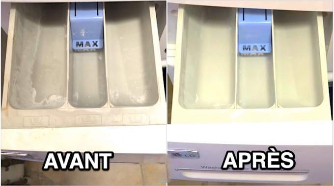 Astuce souvent oubliée : pensez aussi à nettoyer la rainure dans laquelle s’insère le tiroir. Des résidus s’y accumulent fréquemment et empêchent la lessive de s’écouler correctement.