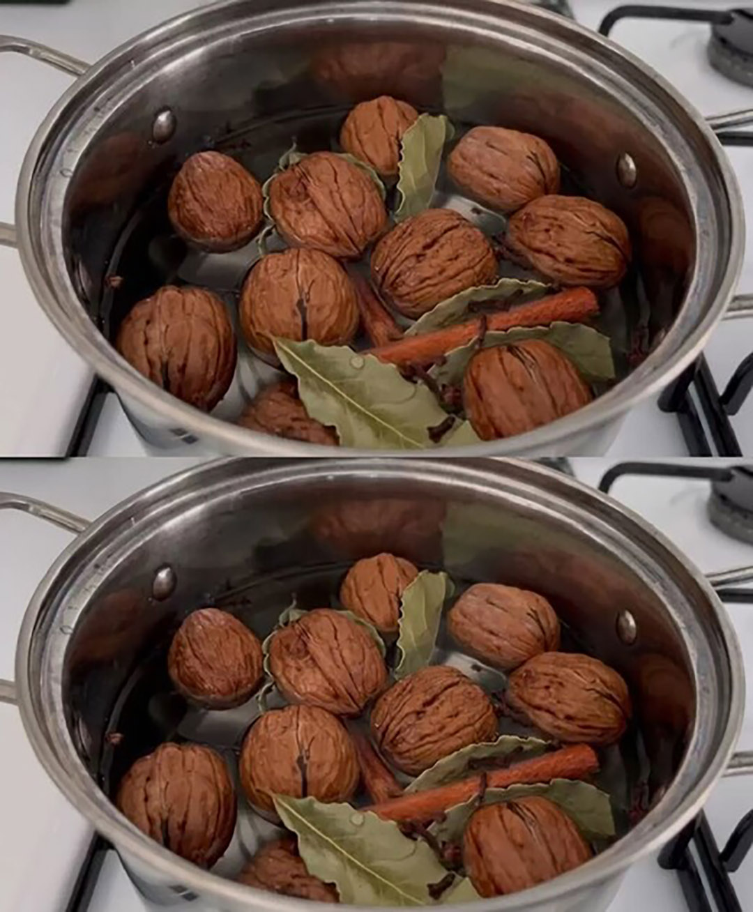 Décoction contre la chute des cheveux à base de noix entières et de feuilles de laurier