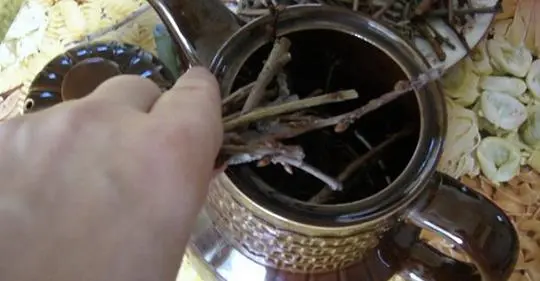 1. On commence par choisir une ou deux brindilles de cerisier, suffisamment longues pour entrer dans une casserole ou une bouilloire.