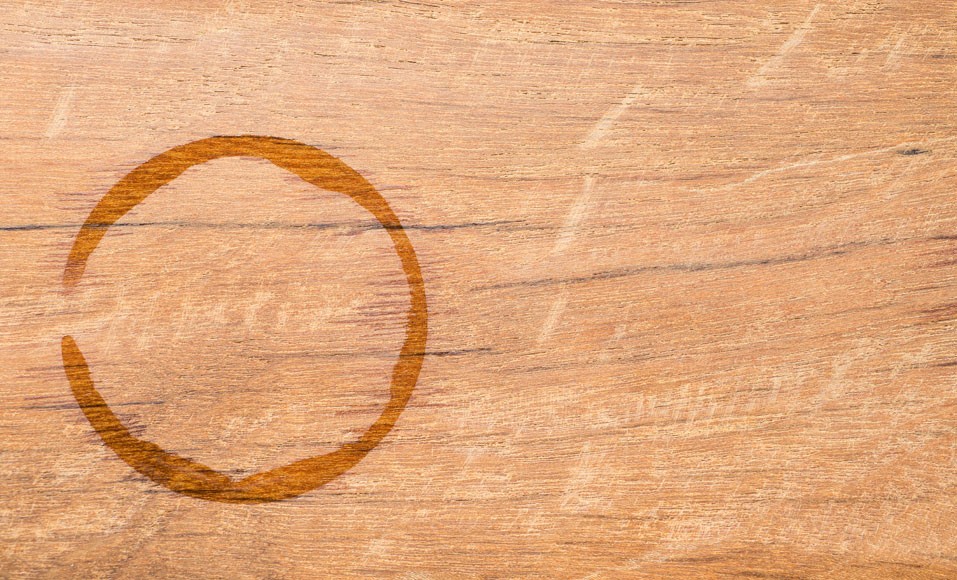 Les auréoles laissées par des verres sur une table en bois peuvent s’estomper. Appliquez le mélange, laissez poser une heure, puis essuyez. Le bois retrouve un bel aspect naturel, comme après un léger entretien.