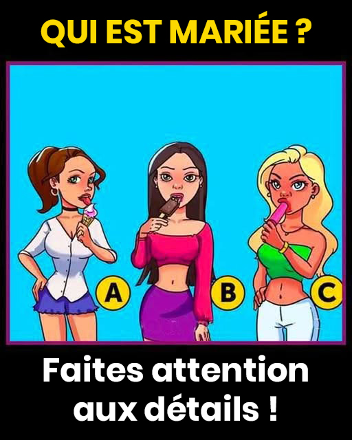 Regardez bien la main gauche de la femme A… Vous voyez cette petite bague discrète ? C’est elle, la clé de l’énigme.