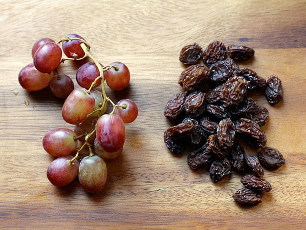 Un simple raisin peut suffire à provoquer une insuffisance rénale chez certains chiens. Les signes d’intoxication incluent des vomissements, de la léthargie et une perte d’appétit.