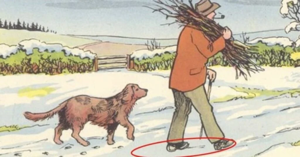 Vous pensez avoir l’œil de lynx et remarquer les moindres petits détails avant tout le monde ? Alors ce défi visuel pourrait bien vous surprendre. À première vue, cette image montre une paisible balade hivernale digne d’une carte postale : un homme avance tranquillement dans la neige avec son chien, dans un décor champêtre aussi calme que charmant. Pourtant, derrière cette scène presque trop parfaite, un détail inattendu se cache… et beaucoup passent à côté au premier regard. Alors, saurez-vous repérer ce qui ne va pas ?