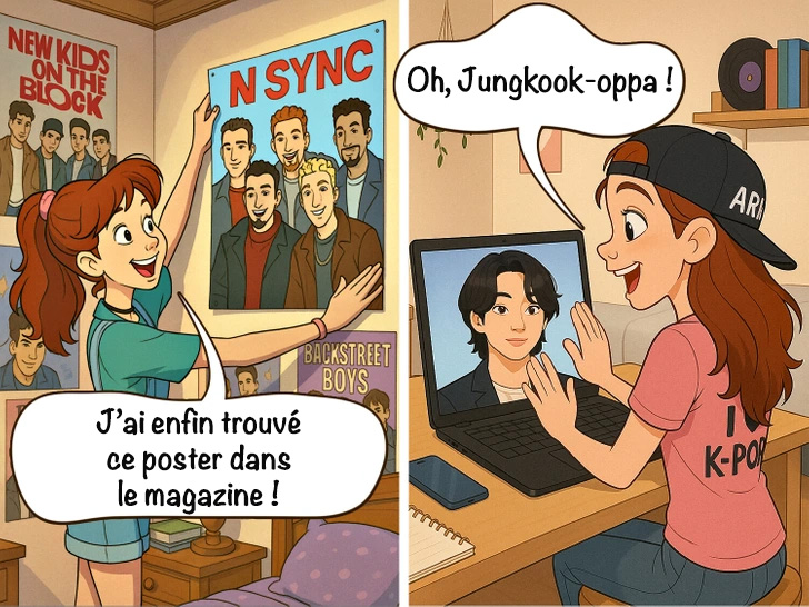 Les posters ont changé, les styles aussi, mais l’amour pour les groupes de garçons reste intact. Simplement, ils viennent désormais souvent de Corée du Sud.